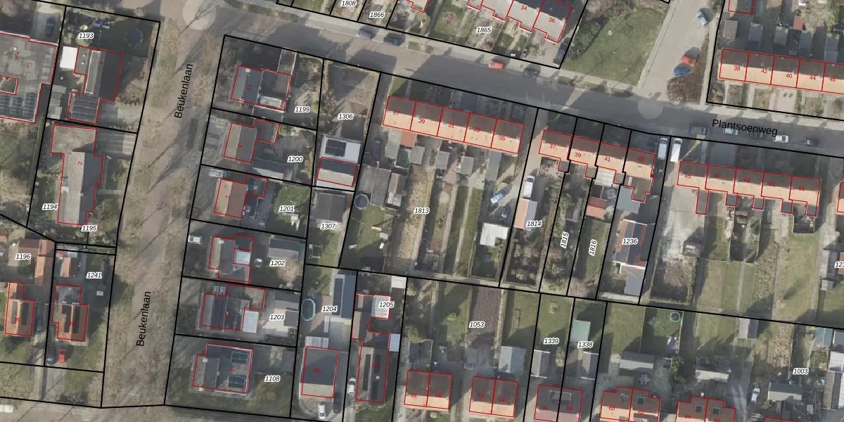 Gebruik de zoekbalk of klik op een perceel om informatie over het perceel te bekijken.