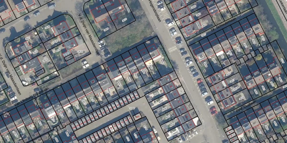 Gebruik de zoekbalk of klik op een perceel om informatie over het perceel te bekijken.
