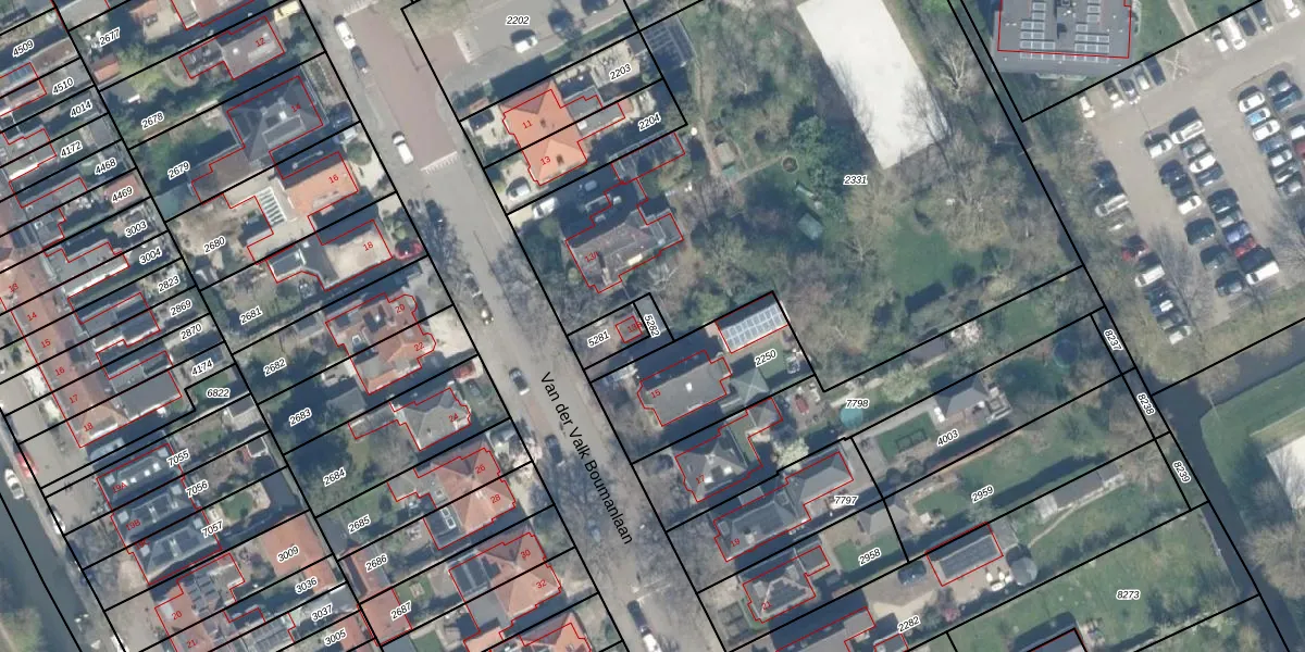 Gebruik de zoekbalk of klik op een perceel om informatie over het perceel te bekijken.
