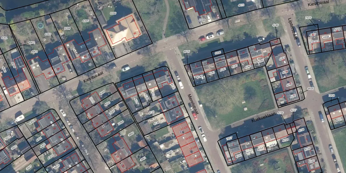 Gebruik de zoekbalk of klik op een perceel om informatie over het perceel te bekijken.