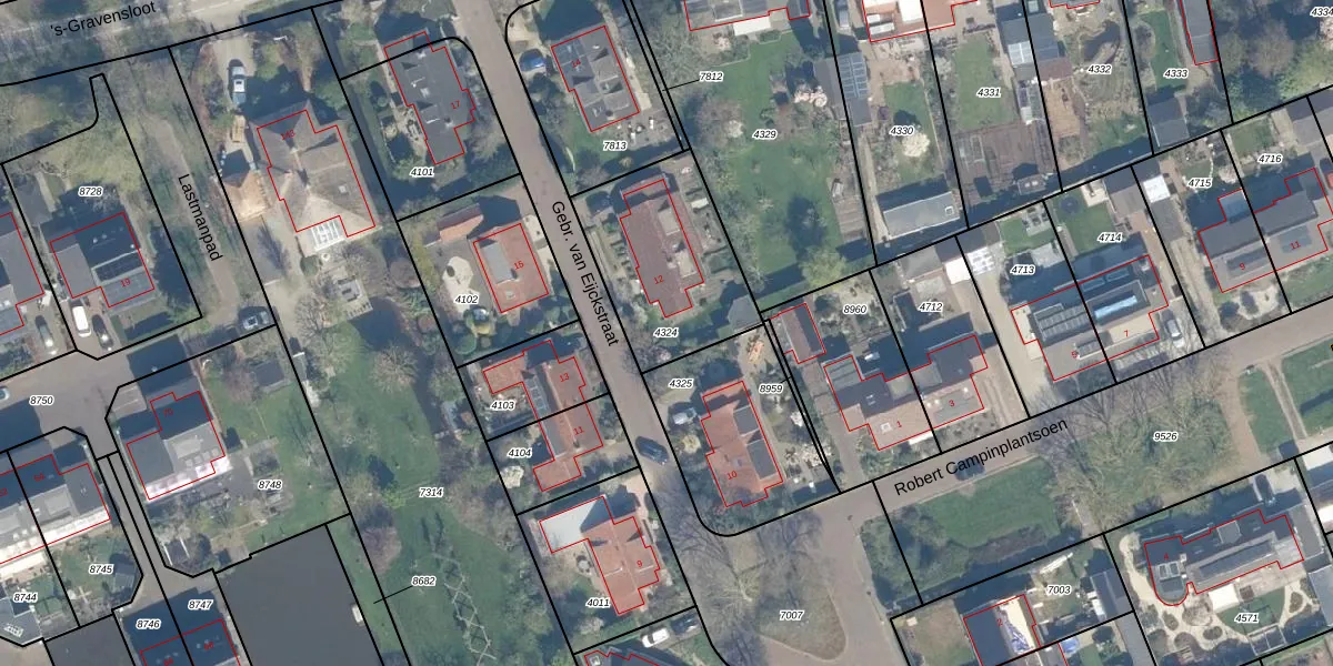 Gebruik de zoekbalk of klik op een perceel om informatie over het perceel te bekijken.