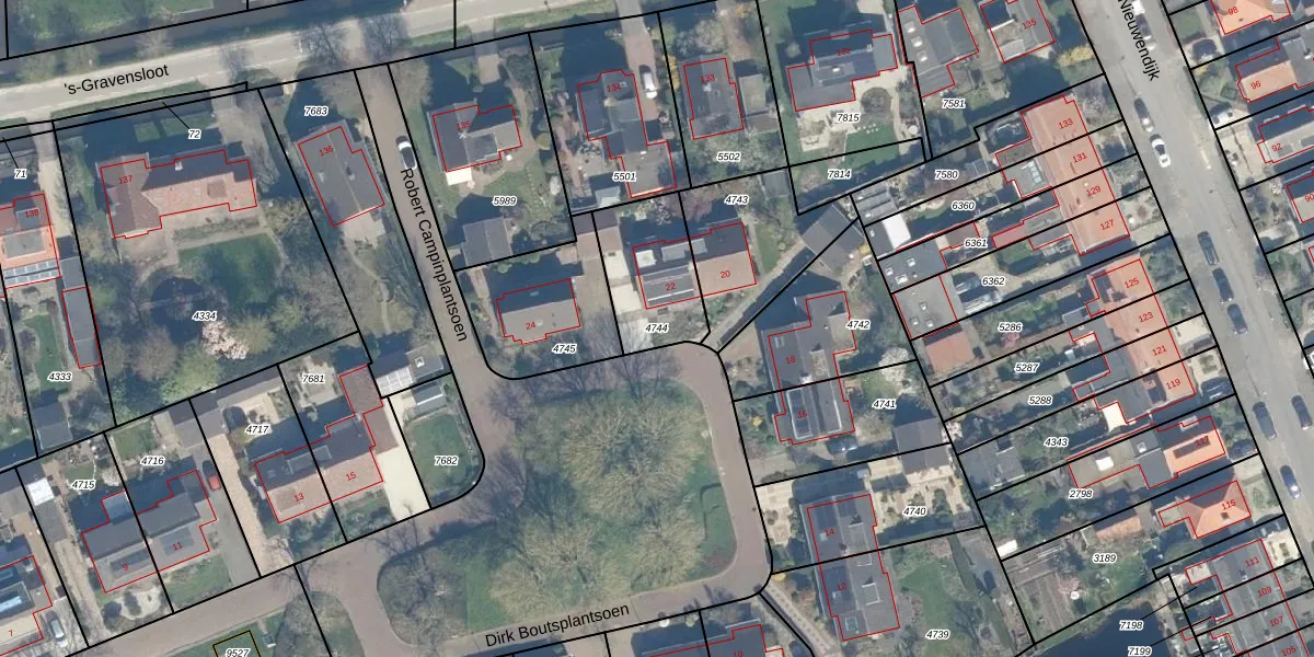 Gebruik de zoekbalk of klik op een perceel om informatie over het perceel te bekijken.