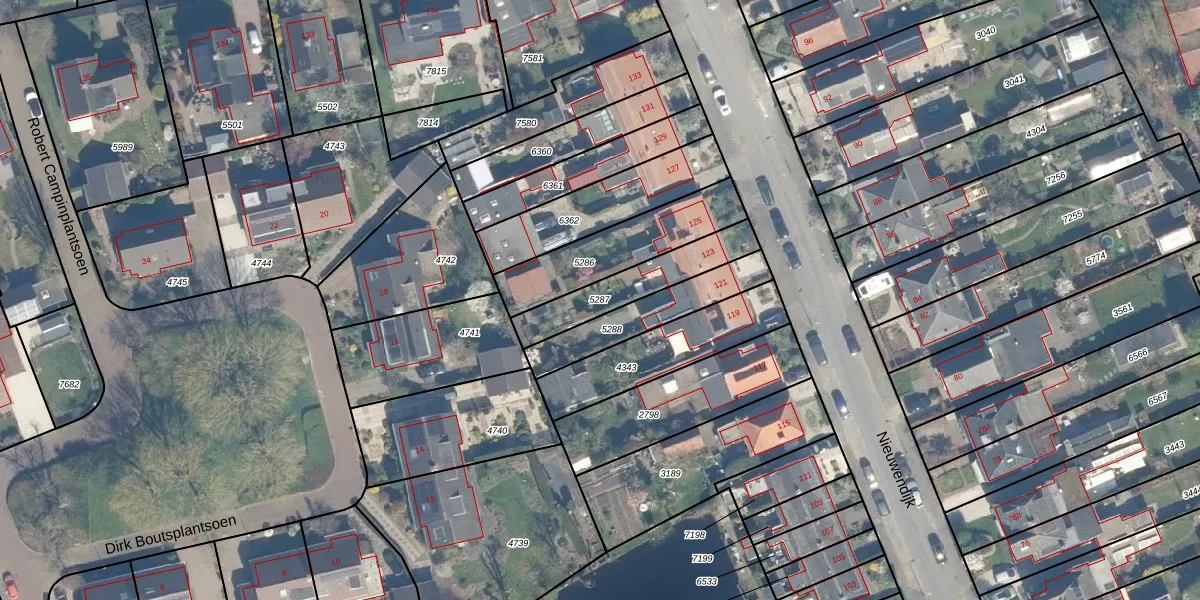 Gebruik de zoekbalk of klik op een perceel om informatie over het perceel te bekijken.