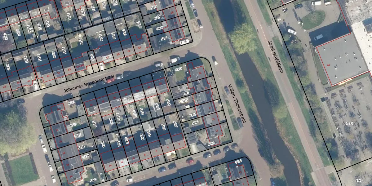 Gebruik de zoekbalk of klik op een perceel om informatie over het perceel te bekijken.