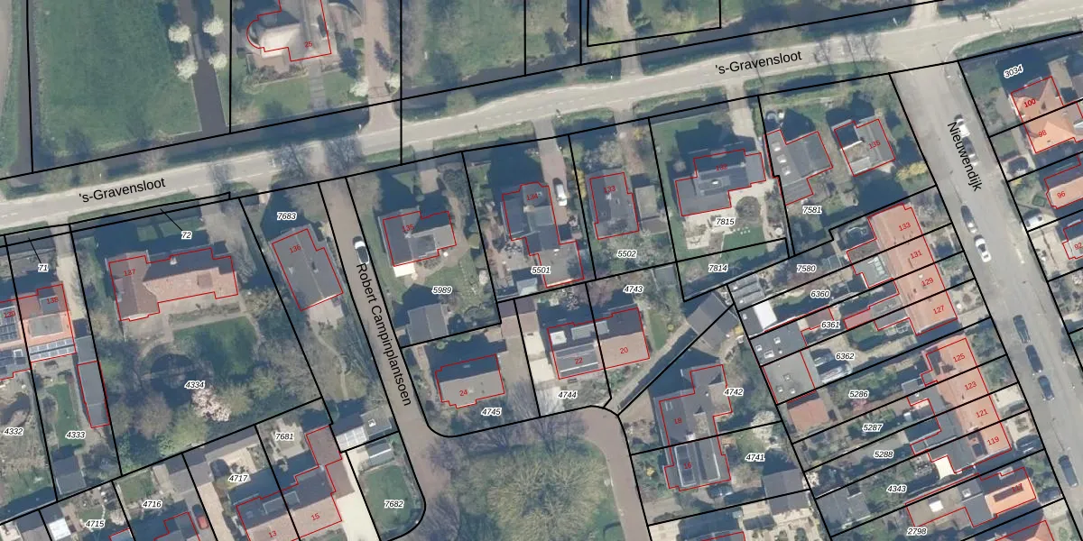 Gebruik de zoekbalk of klik op een perceel om informatie over het perceel te bekijken.