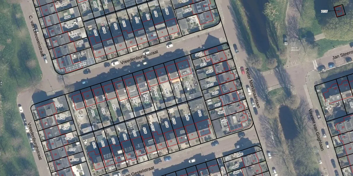 Gebruik de zoekbalk of klik op een perceel om informatie over het perceel te bekijken.