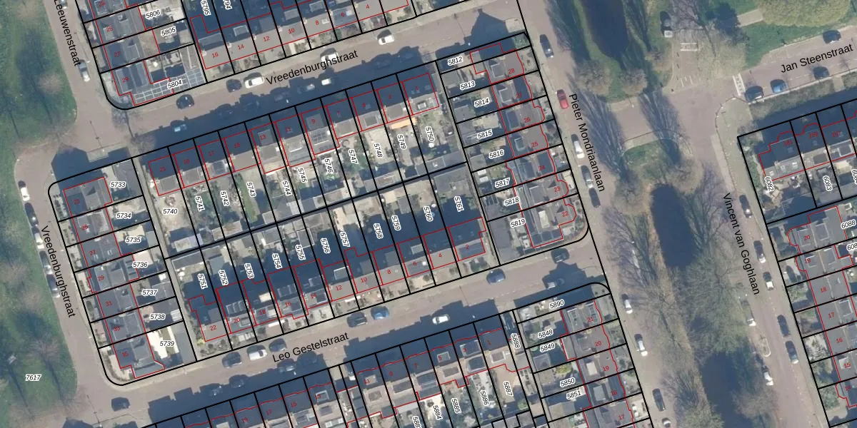 Gebruik de zoekbalk of klik op een perceel om informatie over het perceel te bekijken.