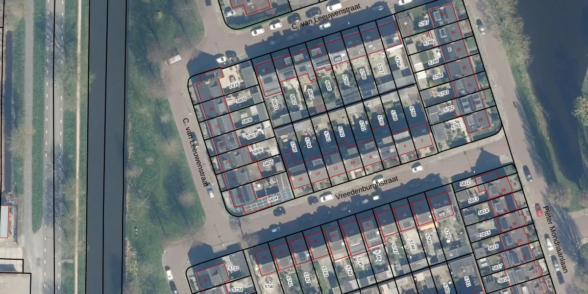Gebruik de zoekbalk of klik op een perceel om informatie over het perceel te bekijken.