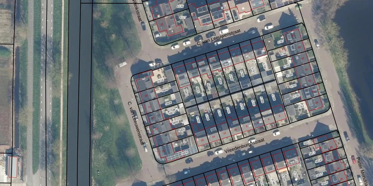 Gebruik de zoekbalk of klik op een perceel om informatie over het perceel te bekijken.