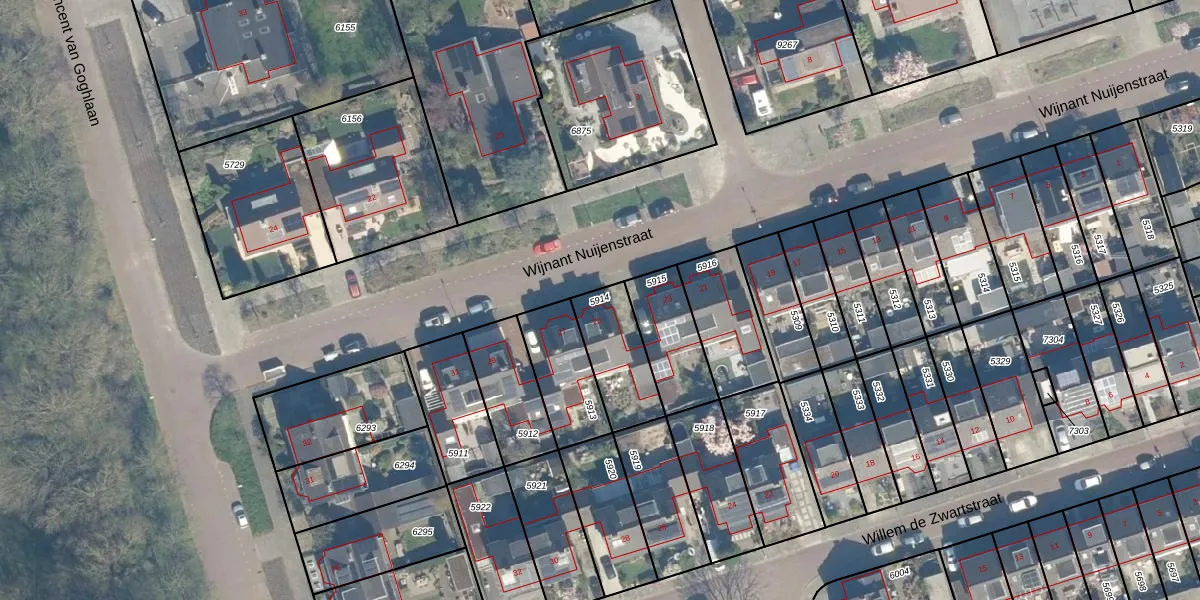 Gebruik de zoekbalk of klik op een perceel om informatie over het perceel te bekijken.