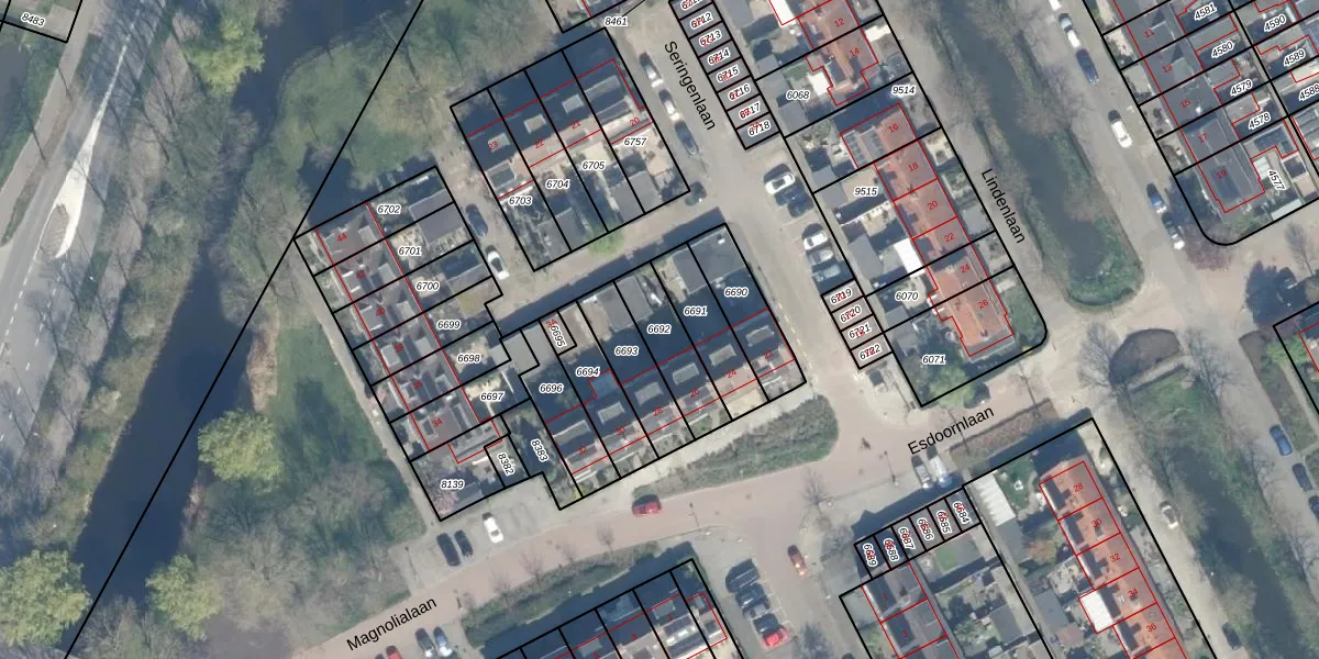Gebruik de zoekbalk of klik op een perceel om informatie over het perceel te bekijken.