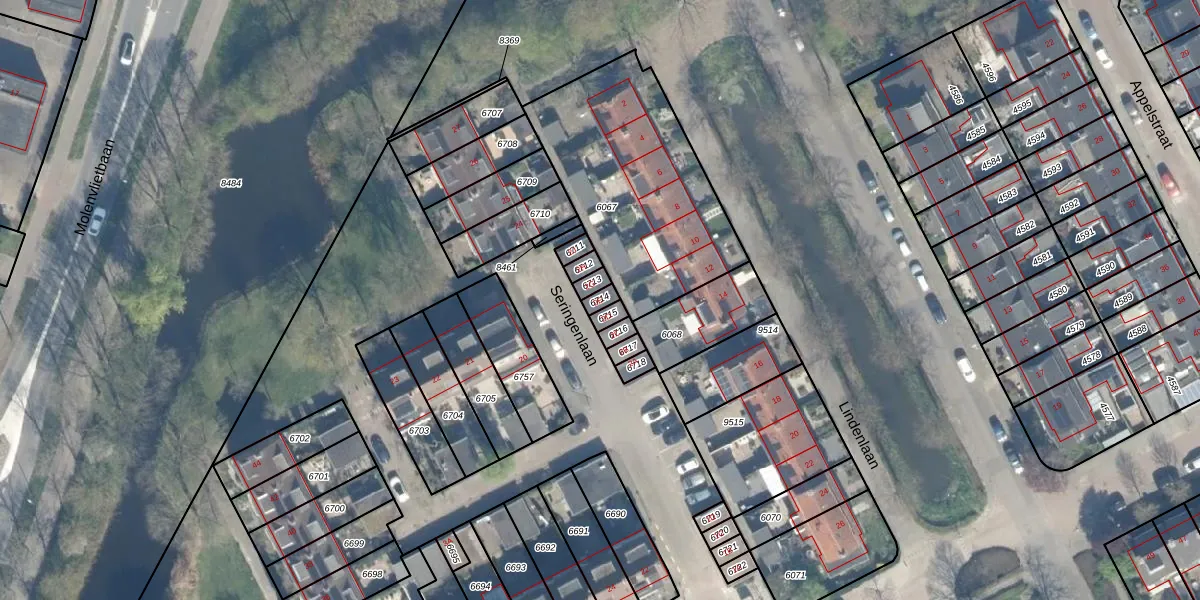 Gebruik de zoekbalk of klik op een perceel om informatie over het perceel te bekijken.
