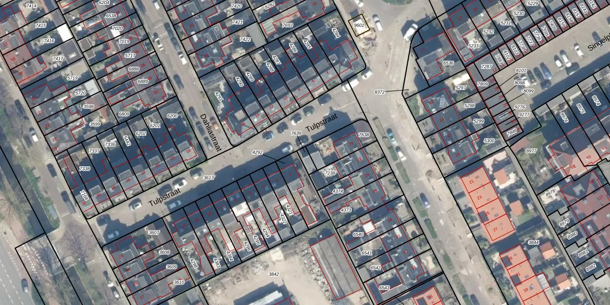 Gebruik de zoekbalk of klik op een perceel om informatie over het perceel te bekijken.