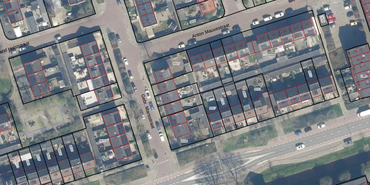 Gebruik de zoekbalk of klik op een perceel om informatie over het perceel te bekijken.