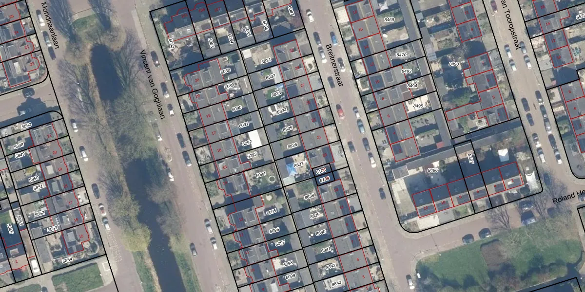 Gebruik de zoekbalk of klik op een perceel om informatie over het perceel te bekijken.