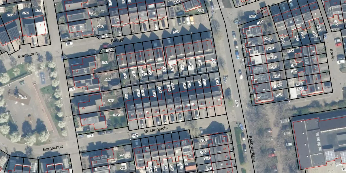 Gebruik de zoekbalk of klik op een perceel om informatie over het perceel te bekijken.