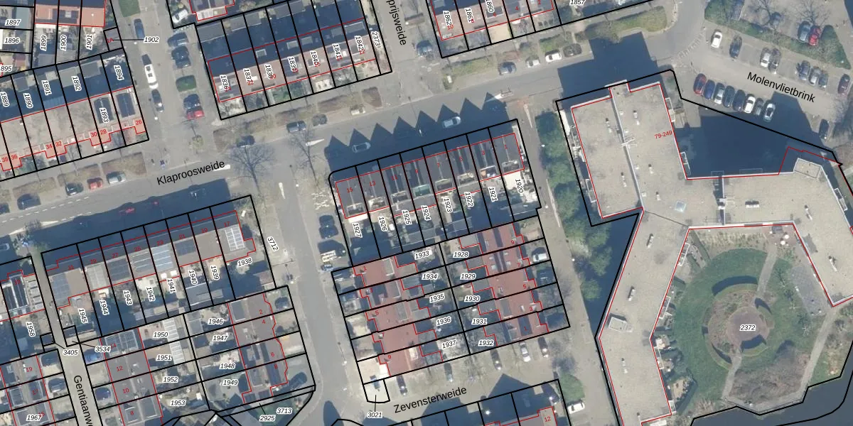 Gebruik de zoekbalk of klik op een perceel om informatie over het perceel te bekijken.