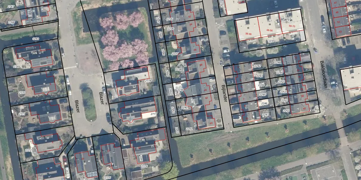 Gebruik de zoekbalk of klik op een perceel om informatie over het perceel te bekijken.
