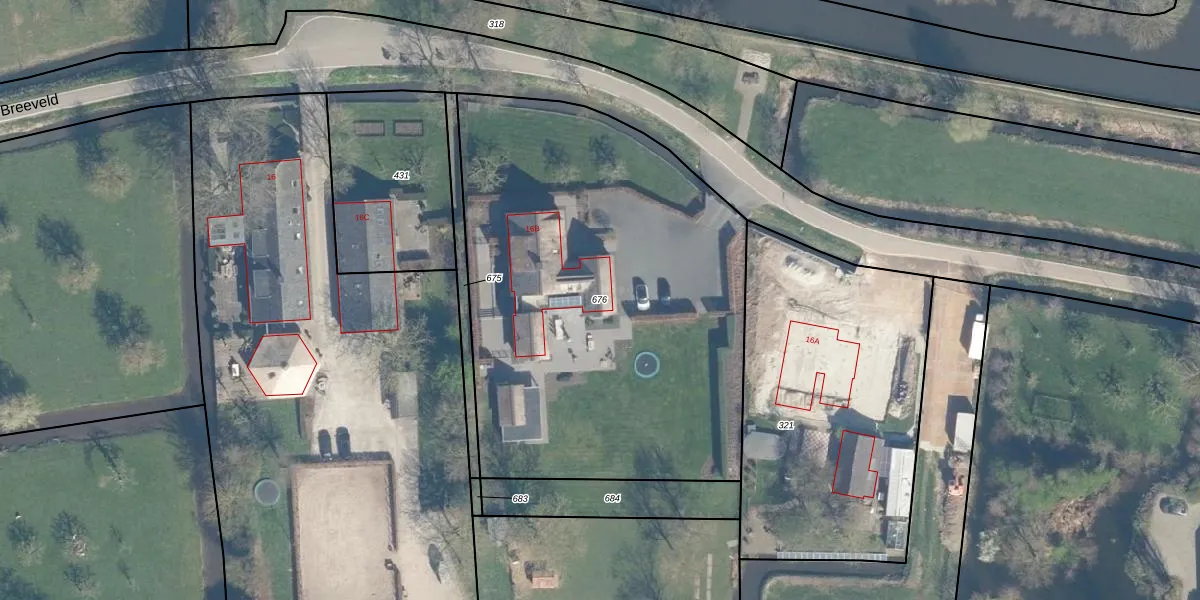 Gebruik de zoekbalk of klik op een perceel om informatie over het perceel te bekijken.