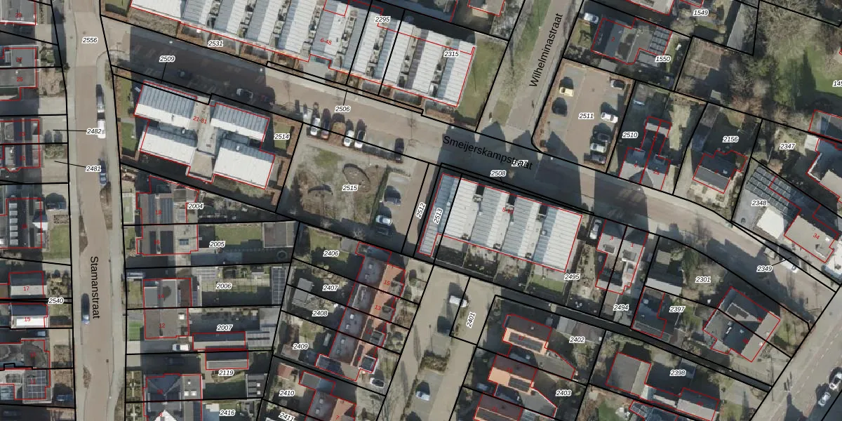 Gebruik de zoekbalk of klik op een perceel om informatie over het perceel te bekijken.