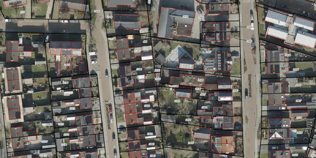 Gebruik de zoekbalk of klik op een perceel om informatie over het perceel te bekijken.