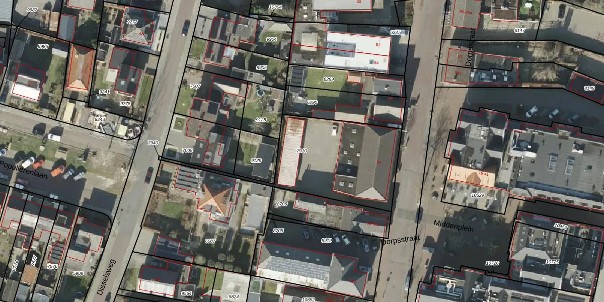 Gebruik de zoekbalk of klik op een perceel om informatie over het perceel te bekijken.