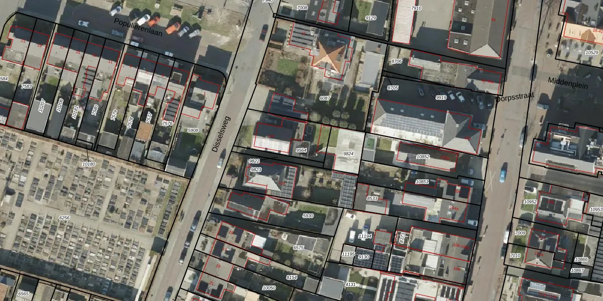 Gebruik de zoekbalk of klik op een perceel om informatie over het perceel te bekijken.