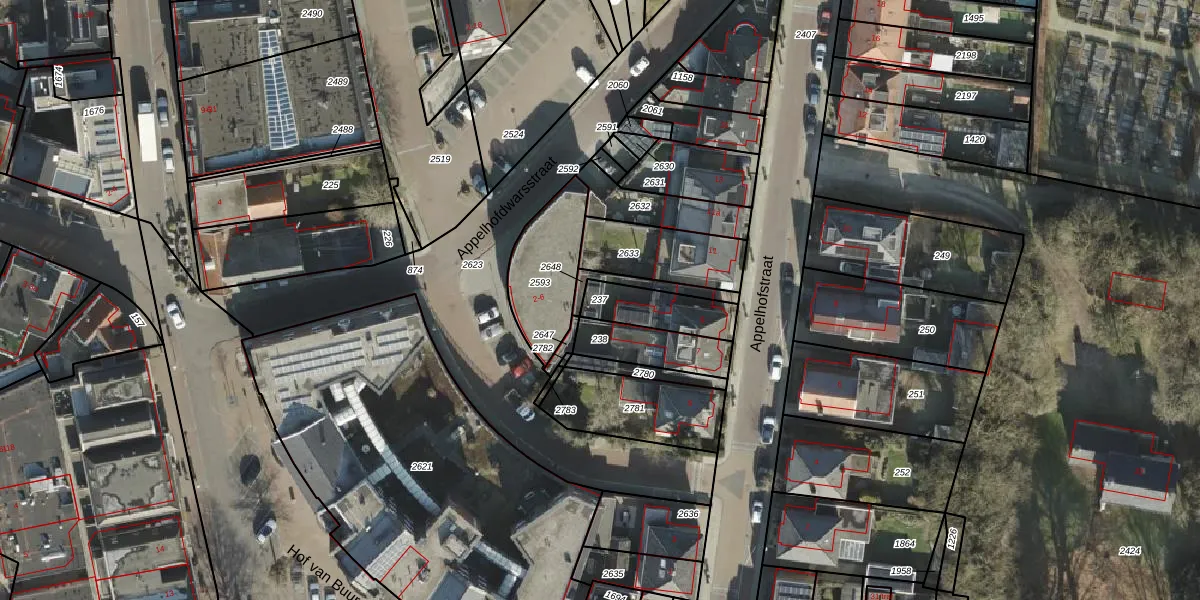 Gebruik de zoekbalk of klik op een perceel om informatie over het perceel te bekijken.