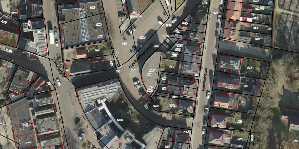 Gebruik de zoekbalk of klik op een perceel om informatie over het perceel te bekijken.