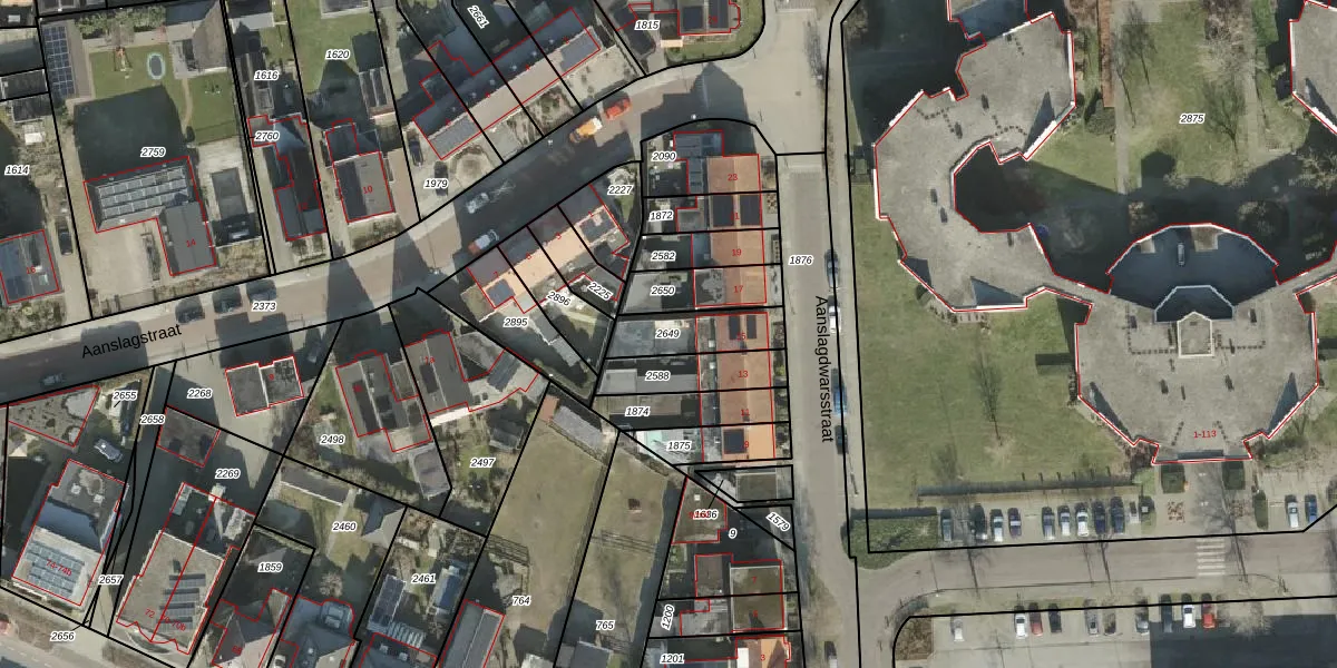 Gebruik de zoekbalk of klik op een perceel om informatie over het perceel te bekijken.