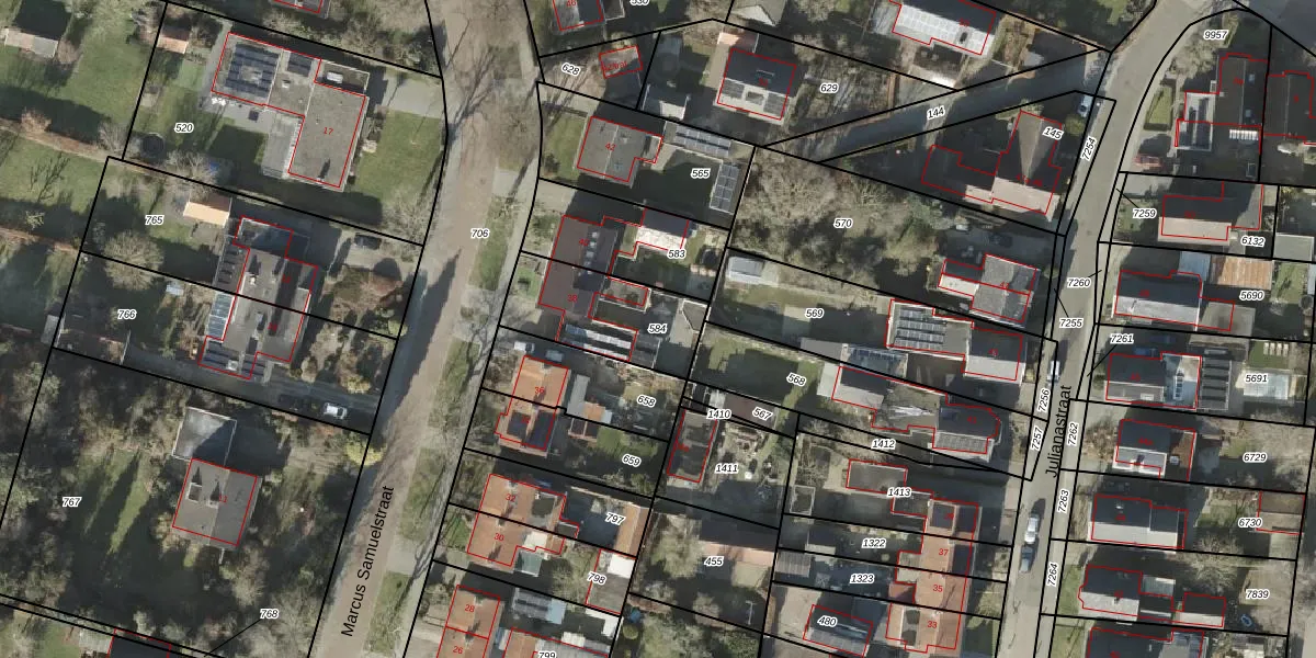 Gebruik de zoekbalk of klik op een perceel om informatie over het perceel te bekijken.