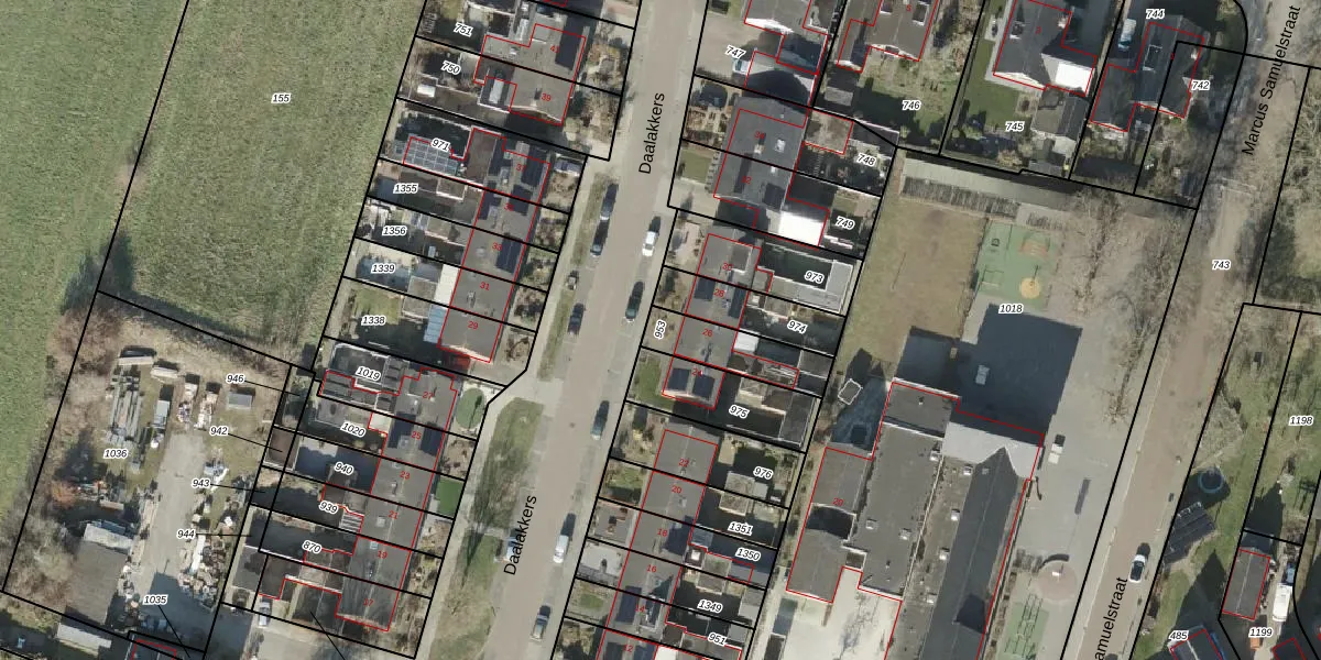 Gebruik de zoekbalk of klik op een perceel om informatie over het perceel te bekijken.
