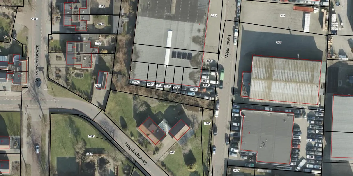 Gebruik de zoekbalk of klik op een perceel om informatie over het perceel te bekijken.