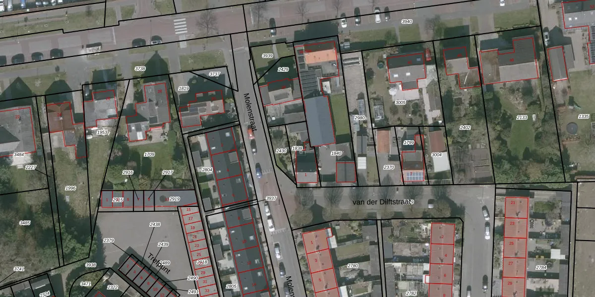 Gebruik de zoekbalk of klik op een perceel om informatie over het perceel te bekijken.