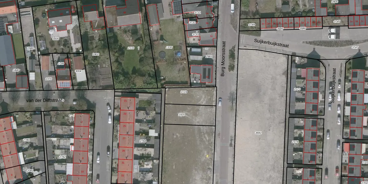 Gebruik de zoekbalk of klik op een perceel om informatie over het perceel te bekijken.