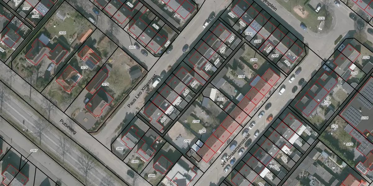 Gebruik de zoekbalk of klik op een perceel om informatie over het perceel te bekijken.