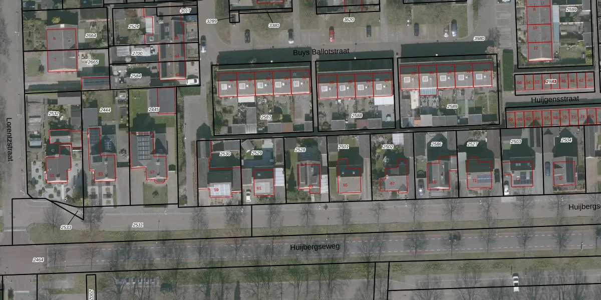 Gebruik de zoekbalk of klik op een perceel om informatie over het perceel te bekijken.