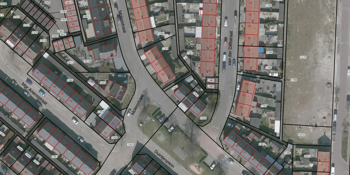 Gebruik de zoekbalk of klik op een perceel om informatie over het perceel te bekijken.