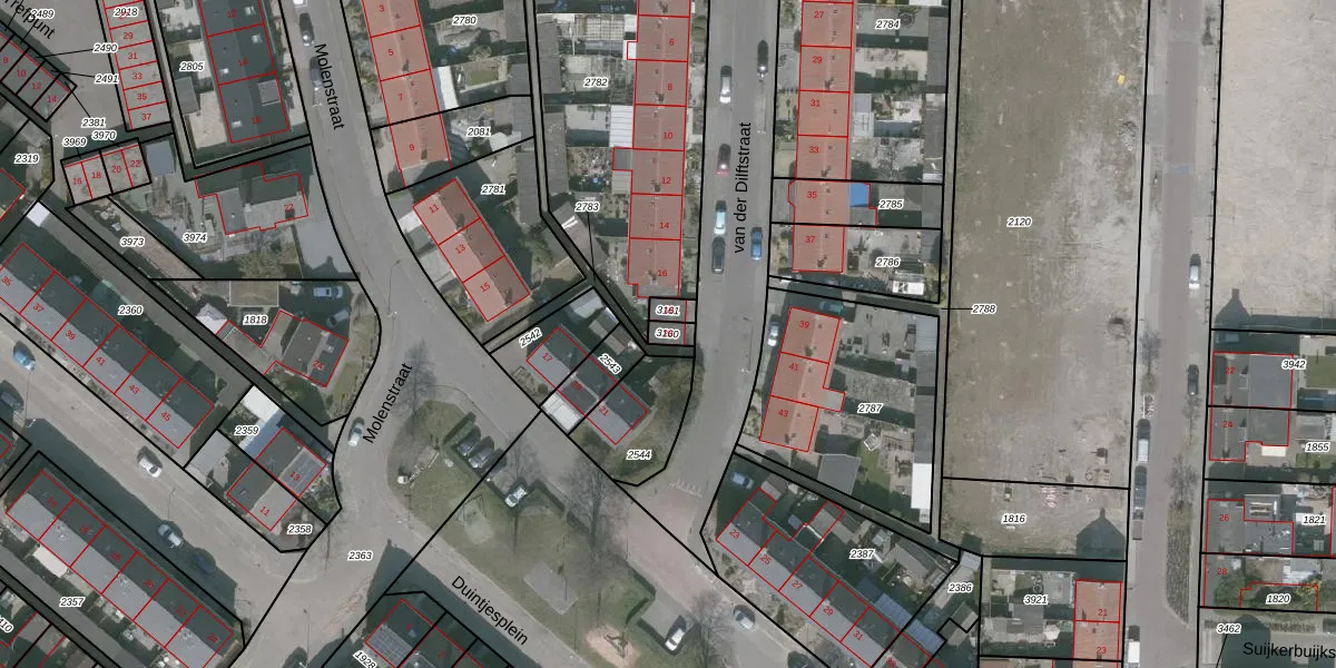 Gebruik de zoekbalk of klik op een perceel om informatie over het perceel te bekijken.