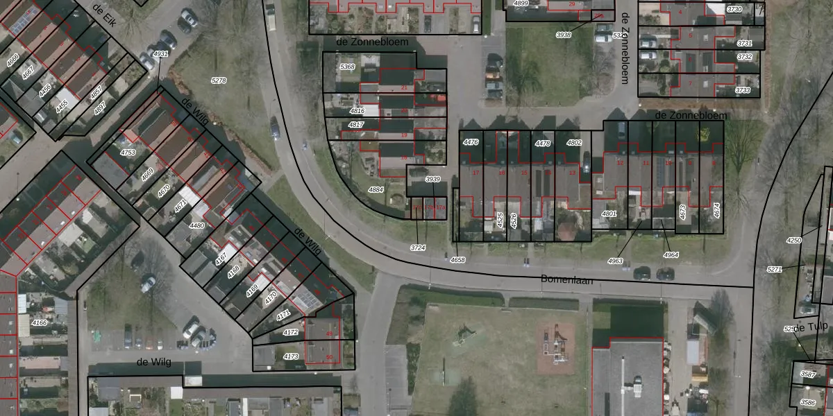 Gebruik de zoekbalk of klik op een perceel om informatie over het perceel te bekijken.