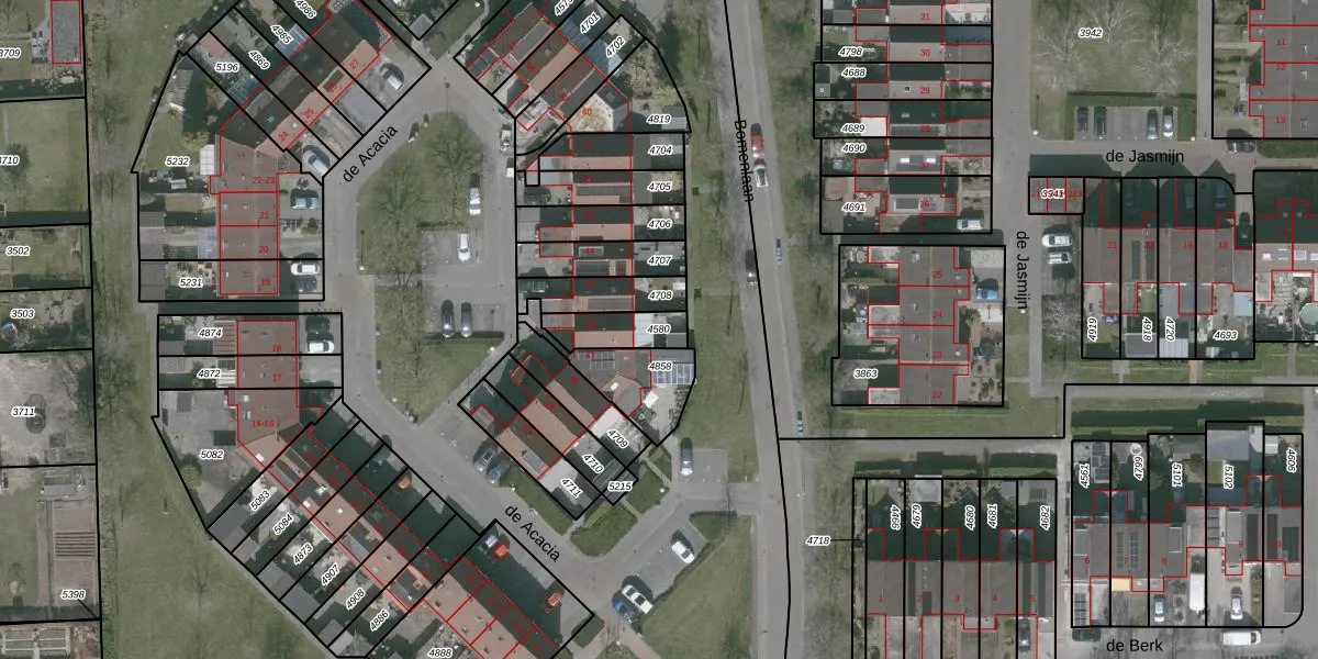 Gebruik de zoekbalk of klik op een perceel om informatie over het perceel te bekijken.