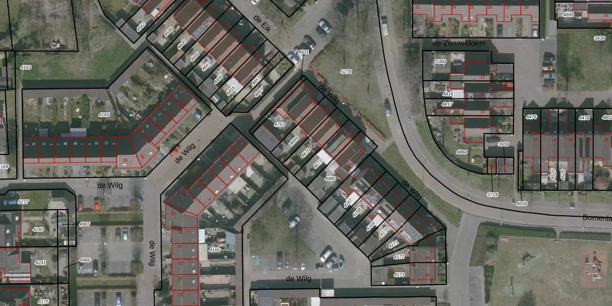 Gebruik de zoekbalk of klik op een perceel om informatie over het perceel te bekijken.