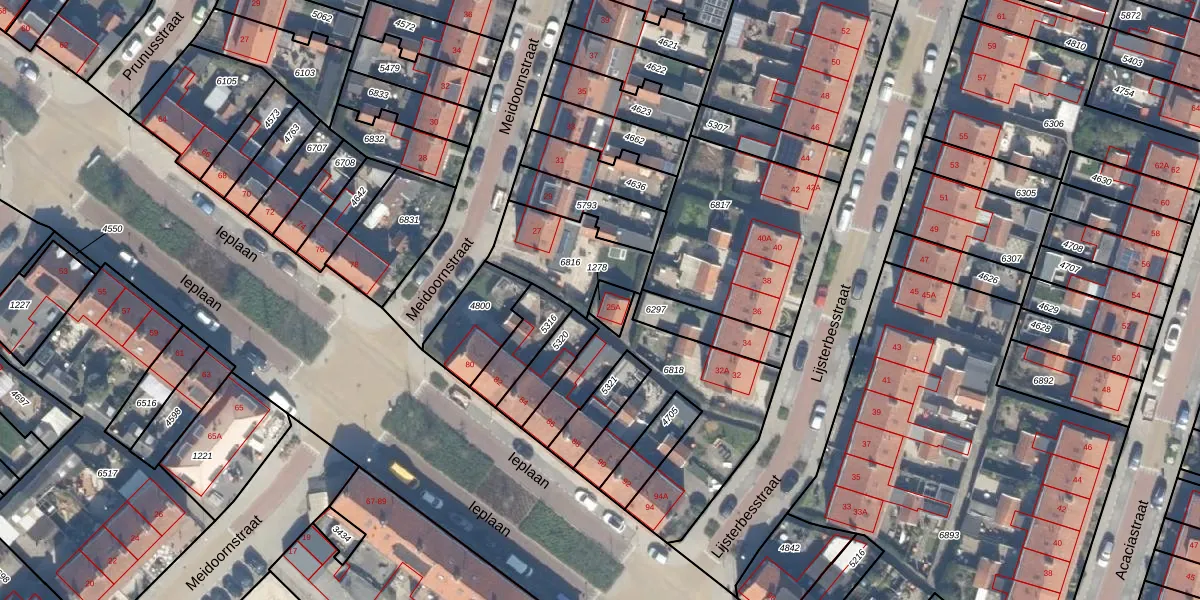 Gebruik de zoekbalk of klik op een perceel om informatie over het perceel te bekijken.