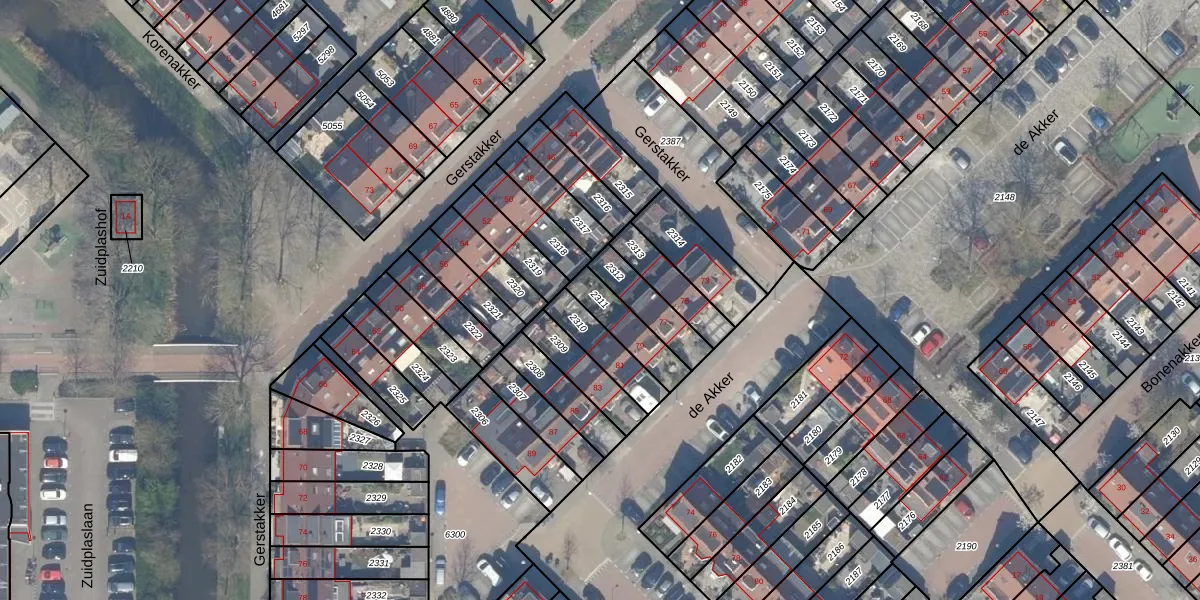 Gebruik de zoekbalk of klik op een perceel om informatie over het perceel te bekijken.