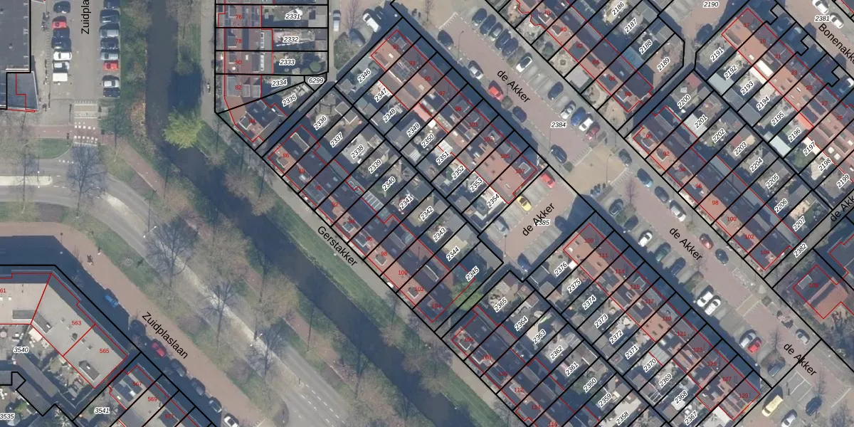 Gebruik de zoekbalk of klik op een perceel om informatie over het perceel te bekijken.