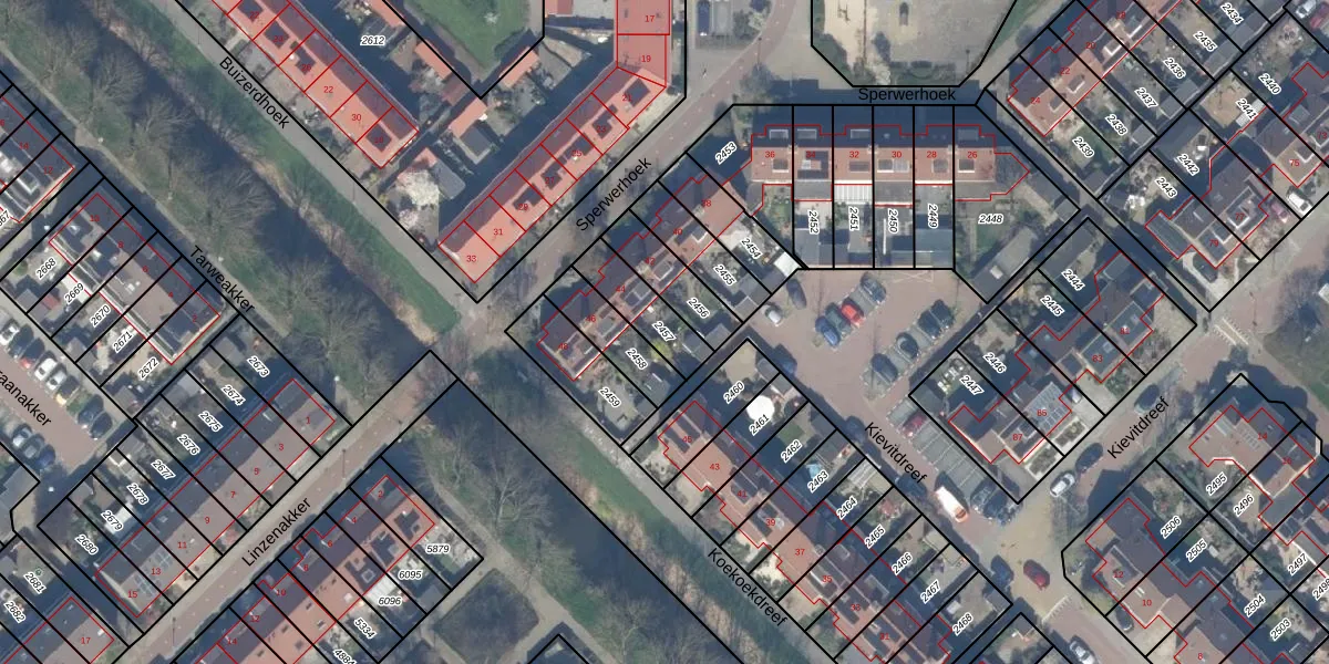 Gebruik de zoekbalk of klik op een perceel om informatie over het perceel te bekijken.
