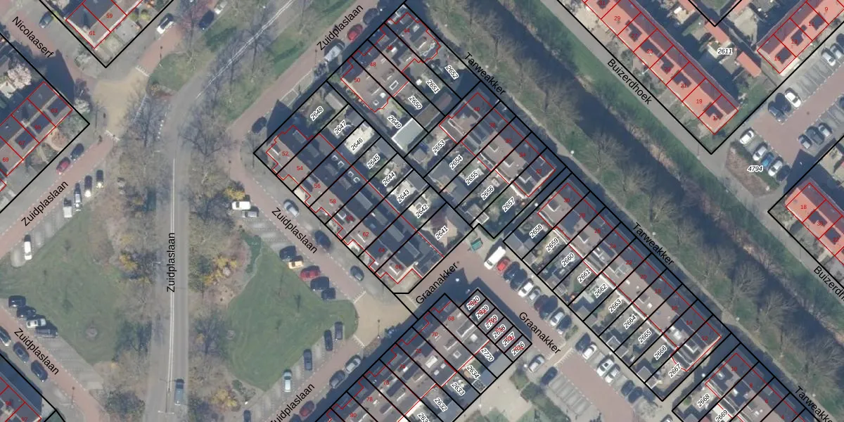 Gebruik de zoekbalk of klik op een perceel om informatie over het perceel te bekijken.