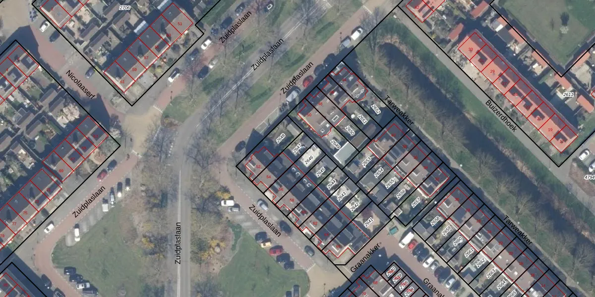 Gebruik de zoekbalk of klik op een perceel om informatie over het perceel te bekijken.