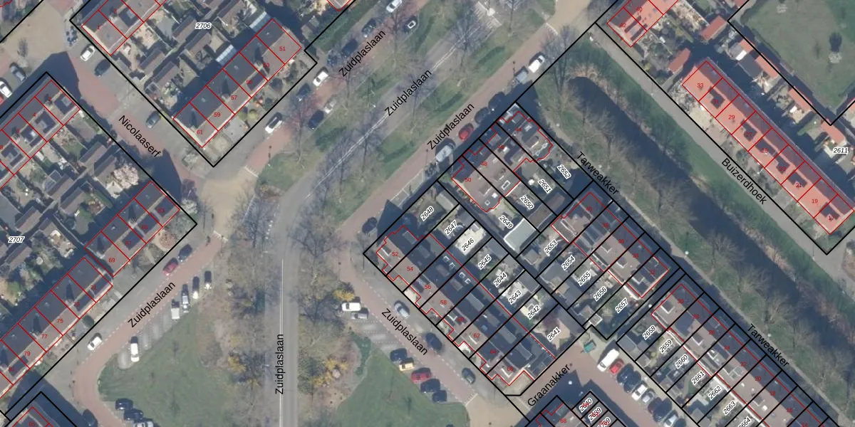Gebruik de zoekbalk of klik op een perceel om informatie over het perceel te bekijken.