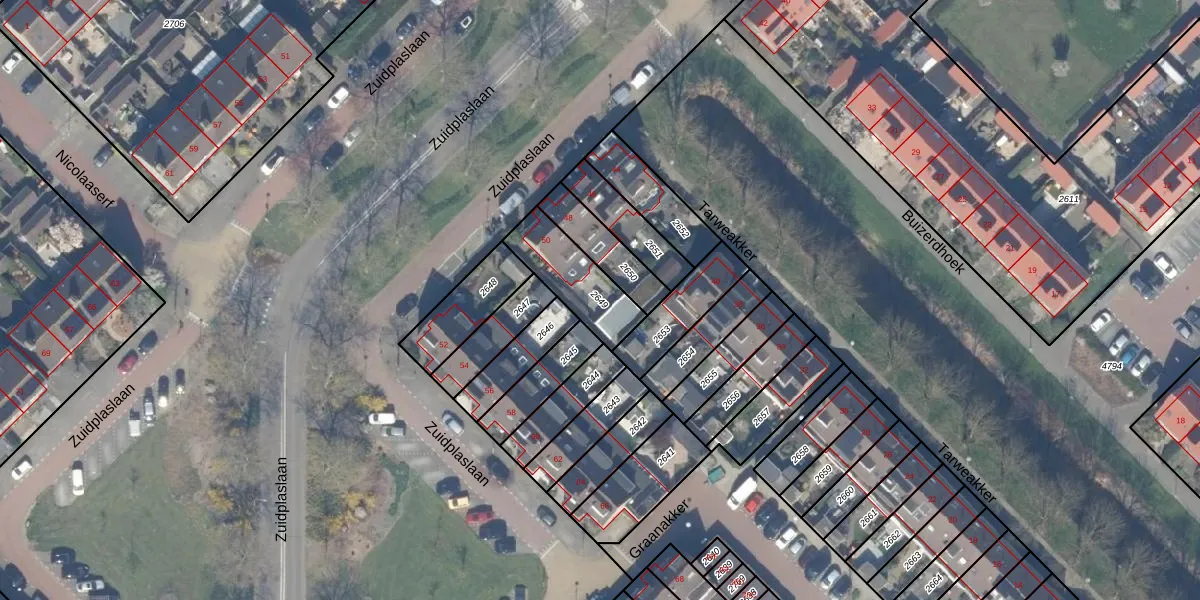 Gebruik de zoekbalk of klik op een perceel om informatie over het perceel te bekijken.